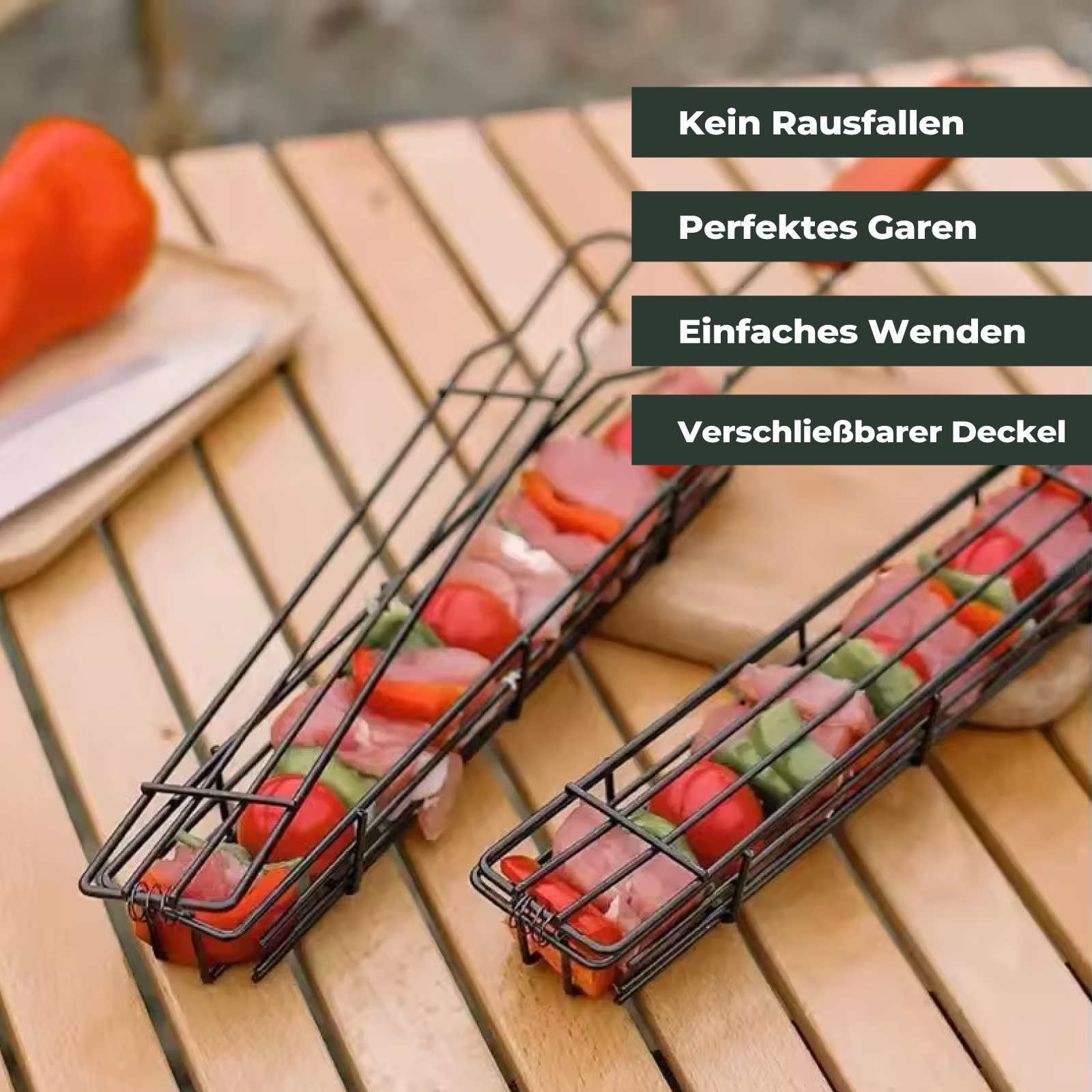 Ob du`s klassisch mit Fleischspießen magst oder lieber vegetarisch kreativ wirst - dieser Spießkorb bringt Vielfalt auf den grill und macht Schluss mit Langeweile.
